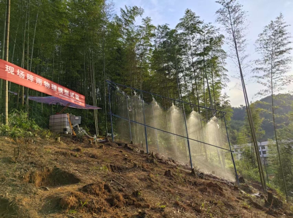 近日,中国地质调查局长沙自然资源综合调查中心(简称“长沙中心”)在湖南省资兴市八面山瑶族乡周塘村,顺利完成野外原位降雨诱发滑坡物理模型试验。该试验旨在通过模拟极端降雨条件下斜坡失稳的全过程,深入揭示花岗岩残积土滑坡的启动机制与成灾规律,为相关区域地质灾害监测预警与防灾减灾提供科学依据。