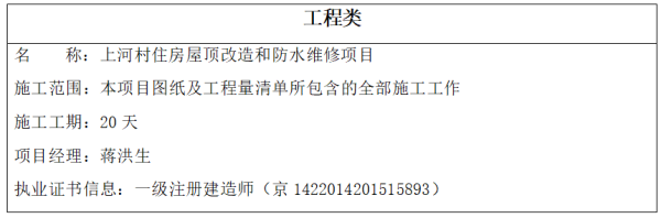 二、项目名称:上河村住房屋顶改造和防水维修项目
