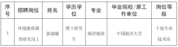 中国地质调查局烟台海岸带地质调查中心2025年度第二批公开招聘拟聘用人员公示