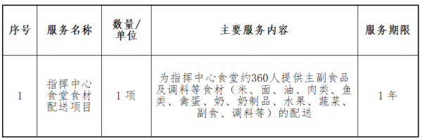 项目名称:中国地质调查局自然资源综合调查指挥中心食堂食材配送项目