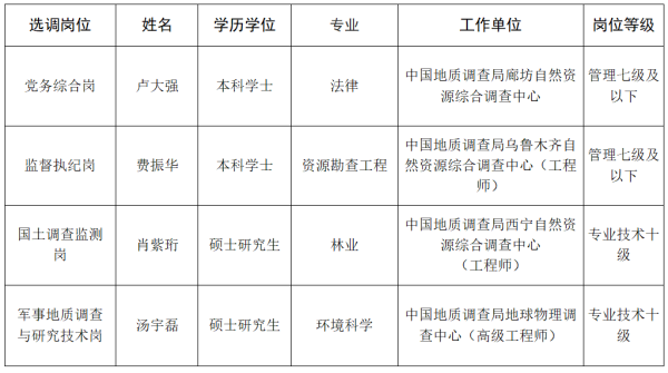 中国地质调查局自然资源综合调查指挥中心2025年度拟交流选调人员公示
