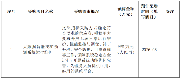 为便于供应商及时了解政府采购信息,根据《财政部关于开展政府采购意向公开工作的通知》(财库〔2020〕10号)等有关规定,现将中国地质调查局自然资源综合调查指挥中心2026年4月(至)5月采购意向公开如下:
