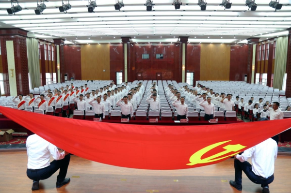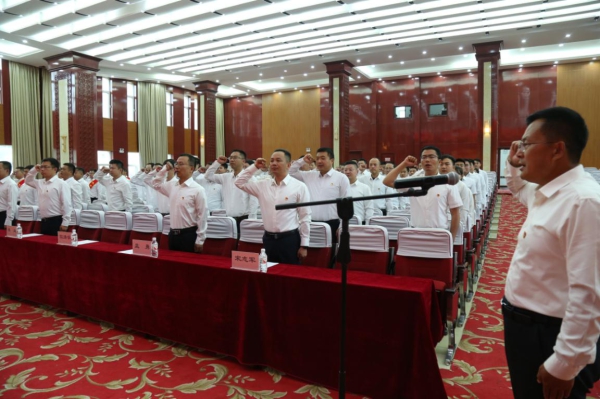 国歌余音未散,全体党员面向鲜红党旗,在领誓人的带领下,高举右拳,重温入党誓词。“我志愿加入中国共产党……随时准备为党和人民牺牲一切,永不叛党!”铿锵有力的誓言字字千钧,激荡着每一位党员的心灵,不仅唤醒了党员干部入党时的赤诚初心,更坚定了他们听党话、跟党走的政治自觉,彰显了为党和人民事业奋斗终身的使命担当。