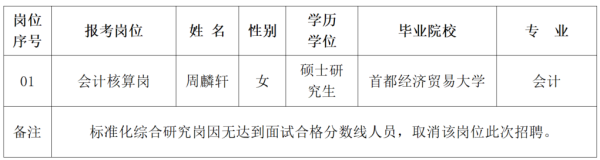 根据《中国地质调查局局属单位2026年度公开招聘工作人员公告(第一批)》,经资格审查、笔试、面试等程序,按照综合成绩由高到低的排序,确定考察对象1名,现将名单公告如下: