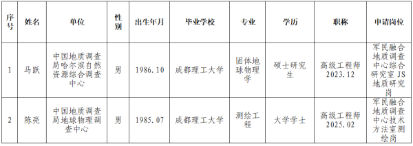 中国地质调查局军民融合地质调查中心拟交流选调人员公告